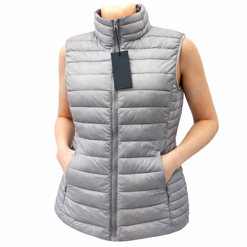 Γυναικείο Καπιτονέ γιλέκο , με φερμουάρ, και όρθιο γιακά και τσέπες με φερμουάρ.