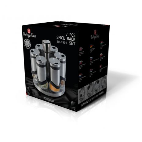 Δώστε χάρη και στιλ στο μεσημεριανό σας τραπέζι με το Σετ Δοχεία Μπαχαρικών με Περιστρεφόμενη Βάση 7 τμχ BH-1991.