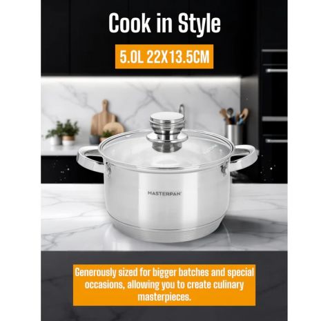 Το Σετ κατσαρόλες από Ανοξείδωτο Ατσάλι, με πυρίμαχα γυάλινα καπάκια 12 τμχ MP-5113 αποτελεί μία επένδυση στην κουζίνα σας, που θα αποδείξει την αξία της στο χρόνο.