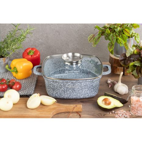 Η Τετράγωνη κατσαρόλα 6,5lt, 28cm EB-3975 κατασκευασμένη από χυτοπρεσαριστό αλουμίνιο συνδυάζει τη στιβαρή κατασκευή με την κομψή εμφάνιση.