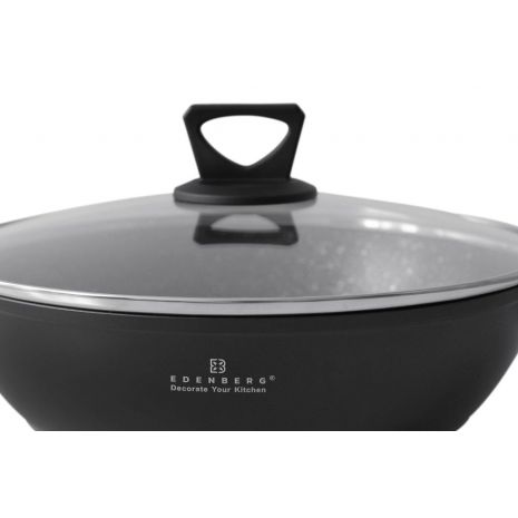 Κατσαρόλα Ρηχή 20cm Αντικολλητική με Επίστρωση Μαρμάρου & Γυάλινο Καπάκι Edenberg, EB-7462