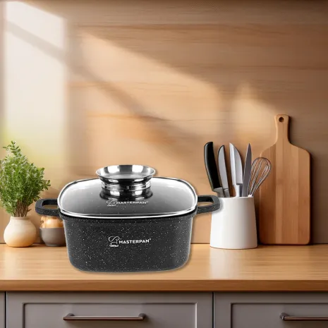 Η τετράγωνη κατσαρόλα MasterPan MP-2103 συνδυάζει επαγγελματική απόδοση, υγιεινό μαγείρεμα και κορυφαία αισθητική, για καθημερινά και απαιτητικά πιάτα χωρίς κόπο.