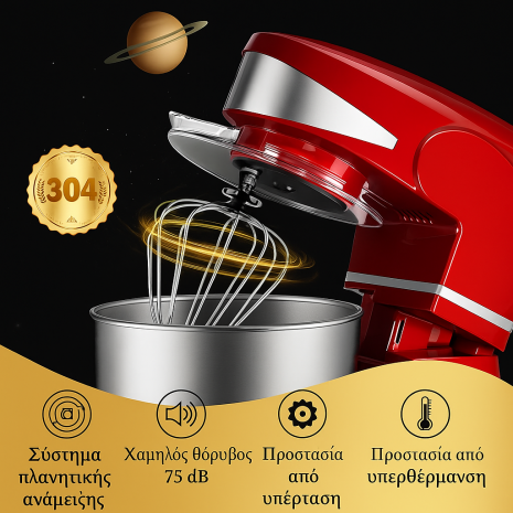 Τα εξαρτήματα του μίξερ ακολουθούν πλάγια και πλανητική κίνηση με διπλή ουσιαστικά περιστροφή: