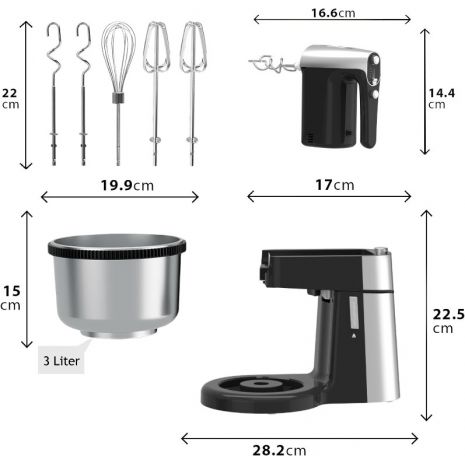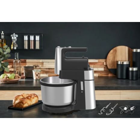 Η συσκευή λειτουργεί τόσο ως επιτραπέζιο μίξερ με βάση, όσο και ως αφαιρούμενο μίξερ χειρός, για μέγιστη ευελιξία και άνεση. Είναι ελαφρύ στο χέρι και εξαιρετικά εύκολο στη χρήση, με εξαρτήματα ασφαλή για πλυντήριο πιάτων.