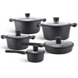 Σετ αντικολλητικά μαγειρικά σκεύη 10 τμχ σε μαύρο χρώμα με ανάγλυφο μοτίβο Edenberg EB-19186