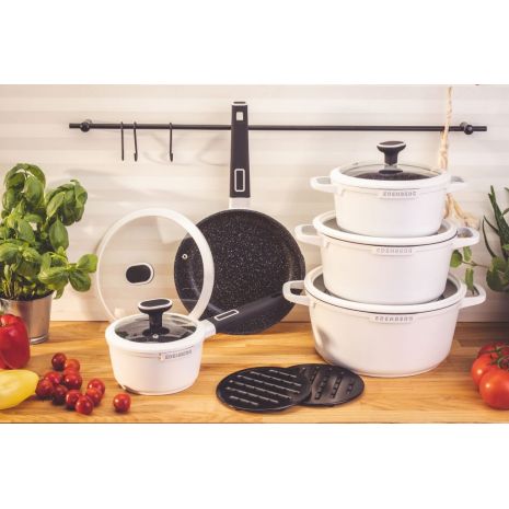 Σετ αντικολλητικά μαγειρικά σκεύη 12 τμχ σε Λευκό χρώμα Edenberg EB-5646