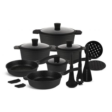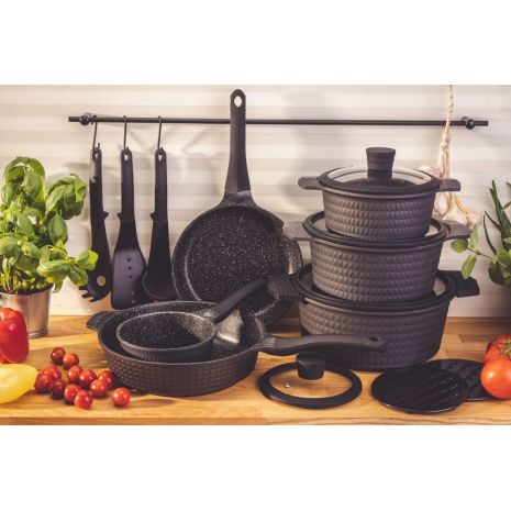 Σετ αντικολλητικά μαγειρικά σκεύη 15 τμχ σε Μαύρο χρώμα Edenberg EB-5645