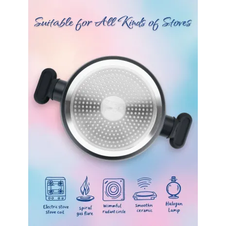 Κατάλληλος για όλες τις εστίες (ηλεκτρικές, κεραμικές, αερίου & επαγωγικές), με έως 35% εξοικονόμηση ενέργειας και ταχύτερη θέρμανση. -
