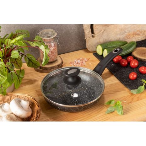 Edenberg, Αντικολλητικό Τηγάνι 28cm για Βαθύ Τηγάνισμα με Μαρμάρινη Επίστρωση και Γυάλινο Καπάκι EB 4111
