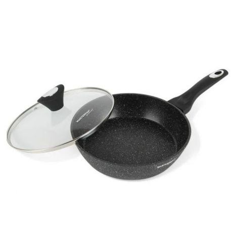 Masterpan, Τηγάνι 28 x 6.8 cm Αντικολλητικό για Βαθύ Τηγάνισμα με Μαρμάρινη Επίστρωση και Γυάλινο Καπάκι MP-2376
