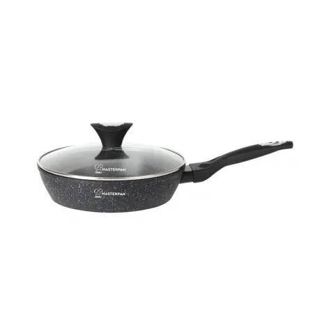 Masterpan, Τηγάνι 20 x 4.8 cm Αντικολλητικό για Βαθύ Τηγάνισμα με Μαρμάρινη Επίστρωση και Γυάλινο Καπάκι MP-2312