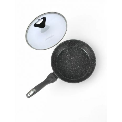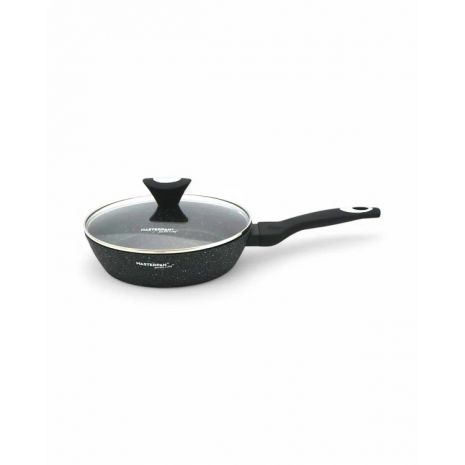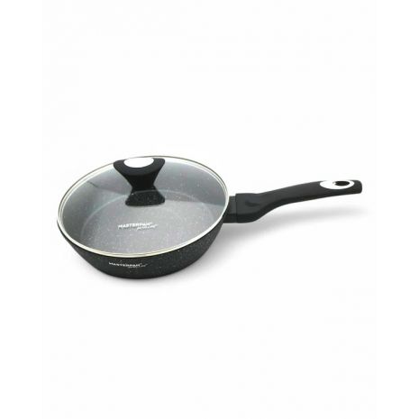 Masterpan, Τηγάνι 24 x 5.8 cm Αντικολλητικό για Βαθύ Τηγάνισμα με Μαρμάρινη Επίστρωση και Γυάλινο Καπάκι MP-2374