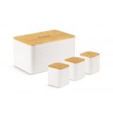 Το σετ αποτελείται από μία ψωμιέρα και τρία βάζα αποθήκευσης κατάλληλα για καφέ, ζάχαρη και τσάι.