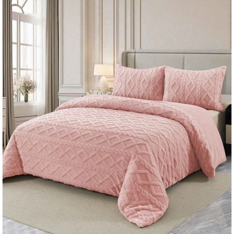 Υπέρδιπλο Ισοθερμικό Κουβερτοπάπλωμα με 2 Μαξιλαροθήκες Tufted Pink